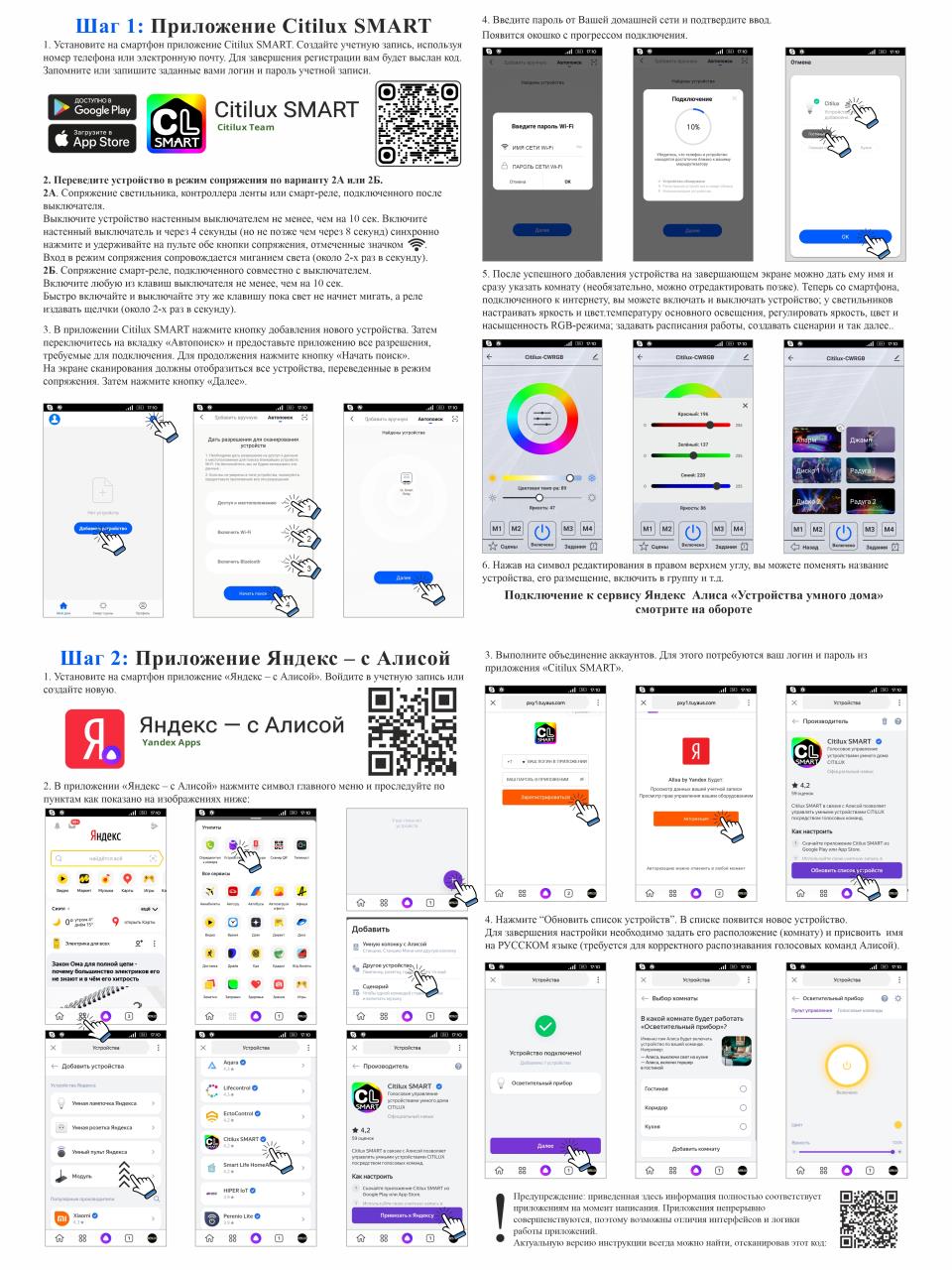 Умная люстра Citilux Старлайт Смарт CL703A31G нового поколения с голосовым управлением Люстры коллекции Старлайт давно закрепили за собой звание самых популярных потолочных светодиодных светильников в России. Оригинальный дизайн, максимальная компактность, широчайший функционал, доступная цена, и это далеко не полный перечень достоинств устройств серии Старлайт. Однако время не стоит на месте и усилиями наших инженеров модели постоянно совершенствуются. Если когда-то вы удивлялись тому, что люстре можно отдавать команды при помощи пульта дистанционного управления, то теперь мы представляем новейшие модели, с практически неограниченными возможностями. Светильником CL703A31G коллекции Старлайт Смарт вы сможете управлять не только при помощи обычного клавишного выключателя и пульта ду, но и фирменного мобильного приложения, доступного на операционных системах IOS и Android, а также просто голосом. Особенности работы с помощью голосового управления Модель работает с самыми популярными в России голосовыми помощниками Алиса и Маруся, также доступно управление с помощью Siri, путем назначения голосовых команд для индивидуальных сценариев. Благодаря этой функции вы получаете уникальную возможность контролировать освещение в квартире, загородном доме или на даче, из любой точки мира, через сеть интернет, при помощи обычного мобильного устройства. Приложение на русском языке, разработанное программистами нашей компании, поможет вам буквально в несколько шагов синхронизировать светильники с вашим мобильным устройством, при этом у вас будет возможность управлять всеми световыми приборами на вашей территории, как синхронно, так и независимо в каждом помещении. Усовершенствованный пульт дистанционного управления Потолочный светильник CL703A31G комплектуется пультом управления новейшего поколения, получившим вдвое больше функционала, за счет реагирования на длинные и короткие нажатия клавиш. Также мы добавили на пульт 4 канала, на которые возможно привязывать не ограниченное количество умных люстр нашего производства, и управлять всеми устройствами синхронно, или по отдельности, любым выбранным каналом. Функционал каждой клавиши можно изучить, просто считав QR-код на задней крышке самого пульта камерой Вашего смартфона. Удобное управление обычным настенным выключателем Традиционно наш светильник снабжен удобнейшим управлением с помощью обычного настенного выключателя, никакой специализированный приобретать и устанавливать не требуется. С выключателя будут срабатывать режимы, которые предварительно запрограммированы на кнопки памяти от М1 до М4 пульта управления. При первом включении, если вы долго отсутствовали дома, всегда включится режим сохраненный на кнопке М1, если светильник выключить настенным выключателем и в течении 5 секунд включить обратно, сработает режим с клавиши М2. Последующие аналогичные циклы переберут оставшиеся сохраненные режимы. Citilux Smart – прорыв в области умного освещения