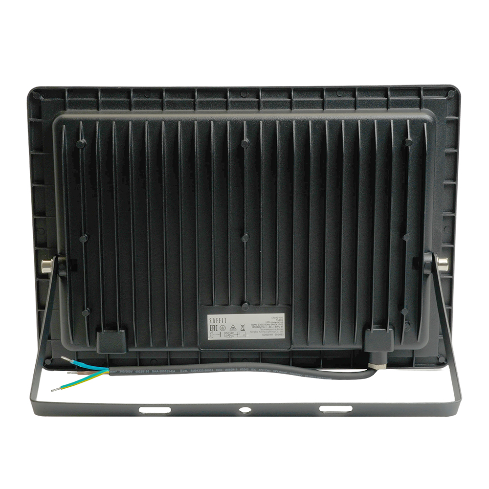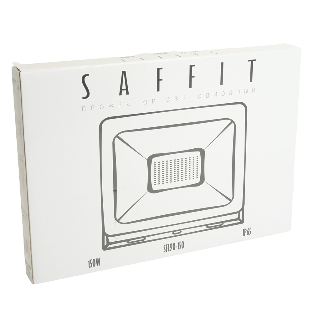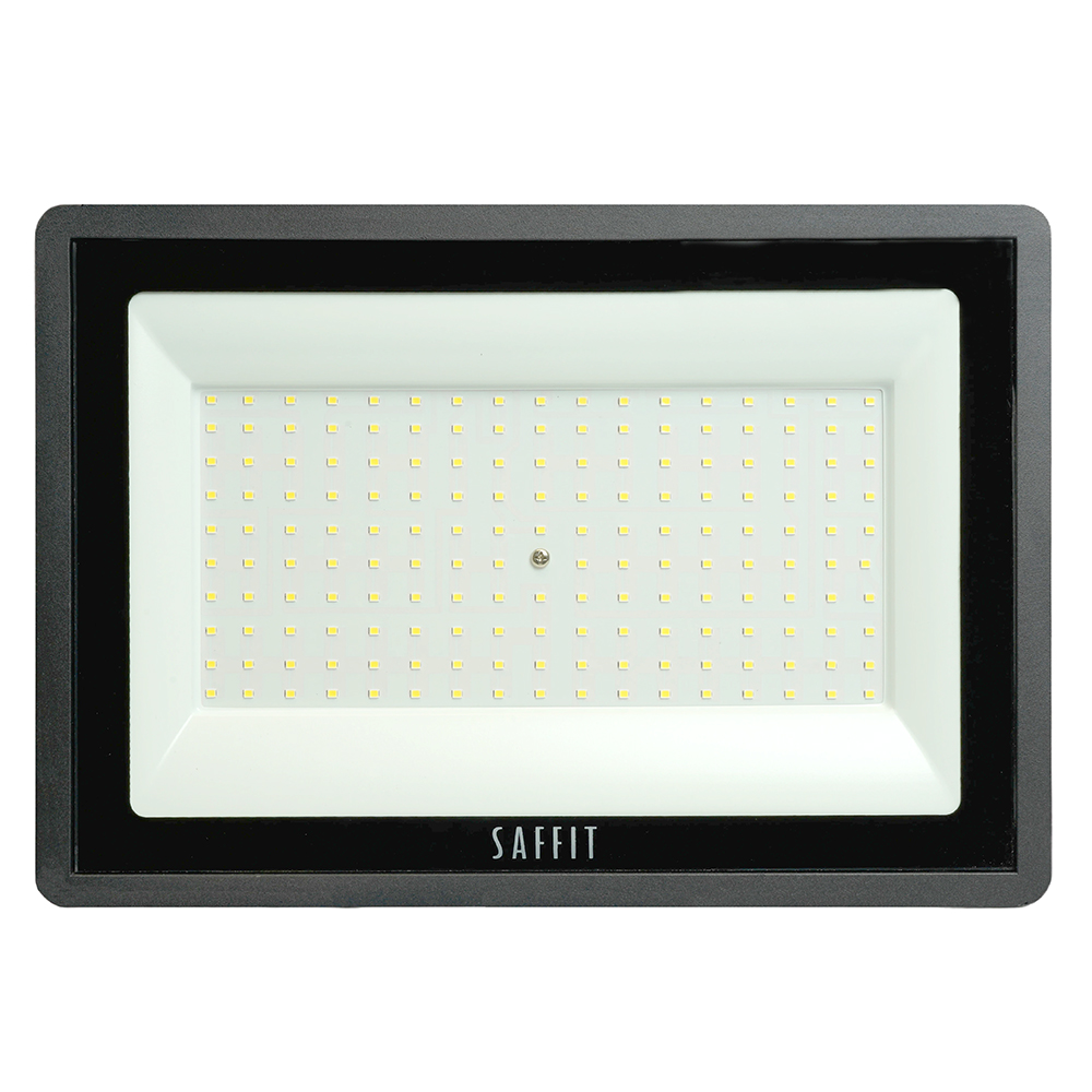 Прожектор светодиодный многоматричный с монтажным креплением на кронштейн, (ДО) SAFFIT SFL90-150, 150W, 6400К (дневной), 230V/50Гц, 13500Lm, IP65, угол рассеивания 120°,*SMD2835, раб.t -40°C - +40°C, цвет черный, корпус алюминий литой под давлением + стекло, 332*226,5*29,5 мм