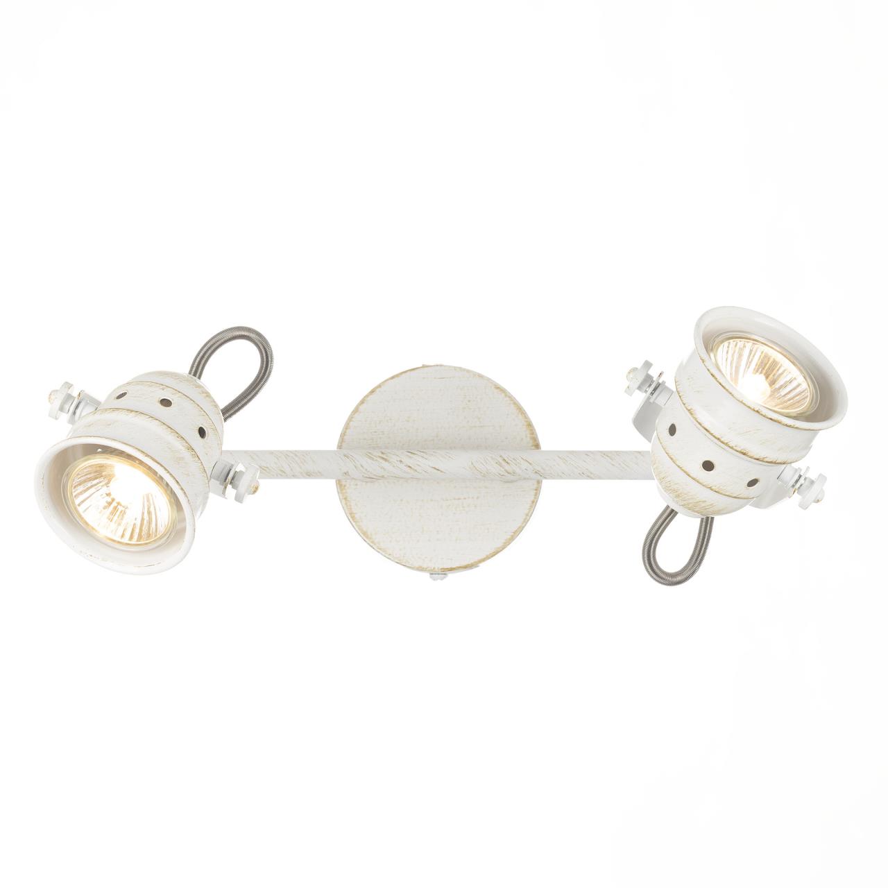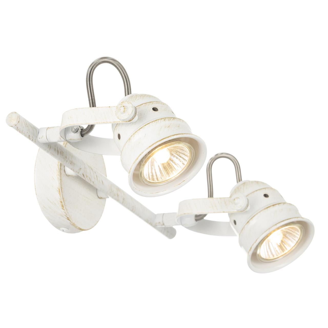 Споты на два рожка коллекции «Веймар» очень универсальное решение с точки зрения применения. За счёт того, что плафоны поворотные в любой плоскости, монтаж возможен и на стену, и на потолок. В качестве настенных светильников сфера применения очень разнообразная: - прикроватный светильник для чтения; - подсветка зеркала, картины; - подсветка рабочего стола, рабочей зоны; - подсветка определённой площади комнаты, если применять на соответствующую площадь или в количествах; При использовании на потолке светильник идеально выполняет функцию основного освещения, так как модель очень яркая и можно направить световой поток в нужную точку с помощью поворотных плафонов. Поворотный механизм не только даёт возможность направлять световой поток в любую сторону, но и даже подсветить стену или потолок за самим светильником. Это позволит мягко осветить помещение отражающимся от поверхности светом и придаст особый уют вашей комнате. Удобные фиксаторы по бокам светильника надёжно закрепят выбранное вами направление света. Двух рожковый спот «Веймар» — современная металлическая конструкция, которая полноценно осветит небольшое помещение площадью до 5 квадратных метров. Светильник состоит из круглого основания со штангой, оснащенной двумя поворотными округлыми плафонами. Арматура светильника покрашена в белый цвет, и декорирована золотыми вставками. Такая покраска делает модель очень универсальной, подойдёт практически для всех стилей и в любое помещение. В комплект входят галогенные лампы GU10 на 50 ватт. Данные лампы предоставляются в комплекте в демонстрационных целях, гарантия на них не распространяется.