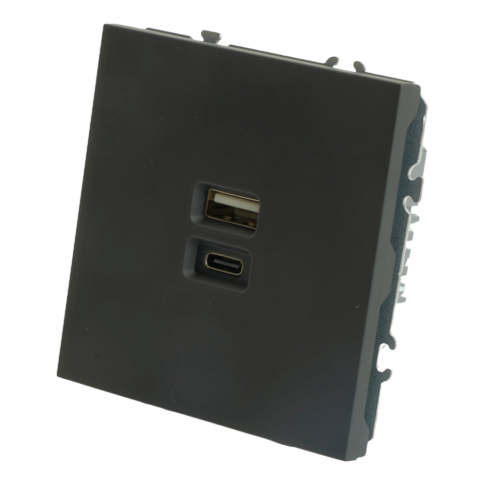 Розетка STEKKER RST10-5115-05 на USB Type A + Type C гнездо, -, -. Материал: поликарбонат, латунь, сталь, цвет черный уголь, soft touch, размер 71*71*41мм. Номинальное напряжение 250, номинальный ток 3A, диапазон рабочих температур 0..+35°C, 20