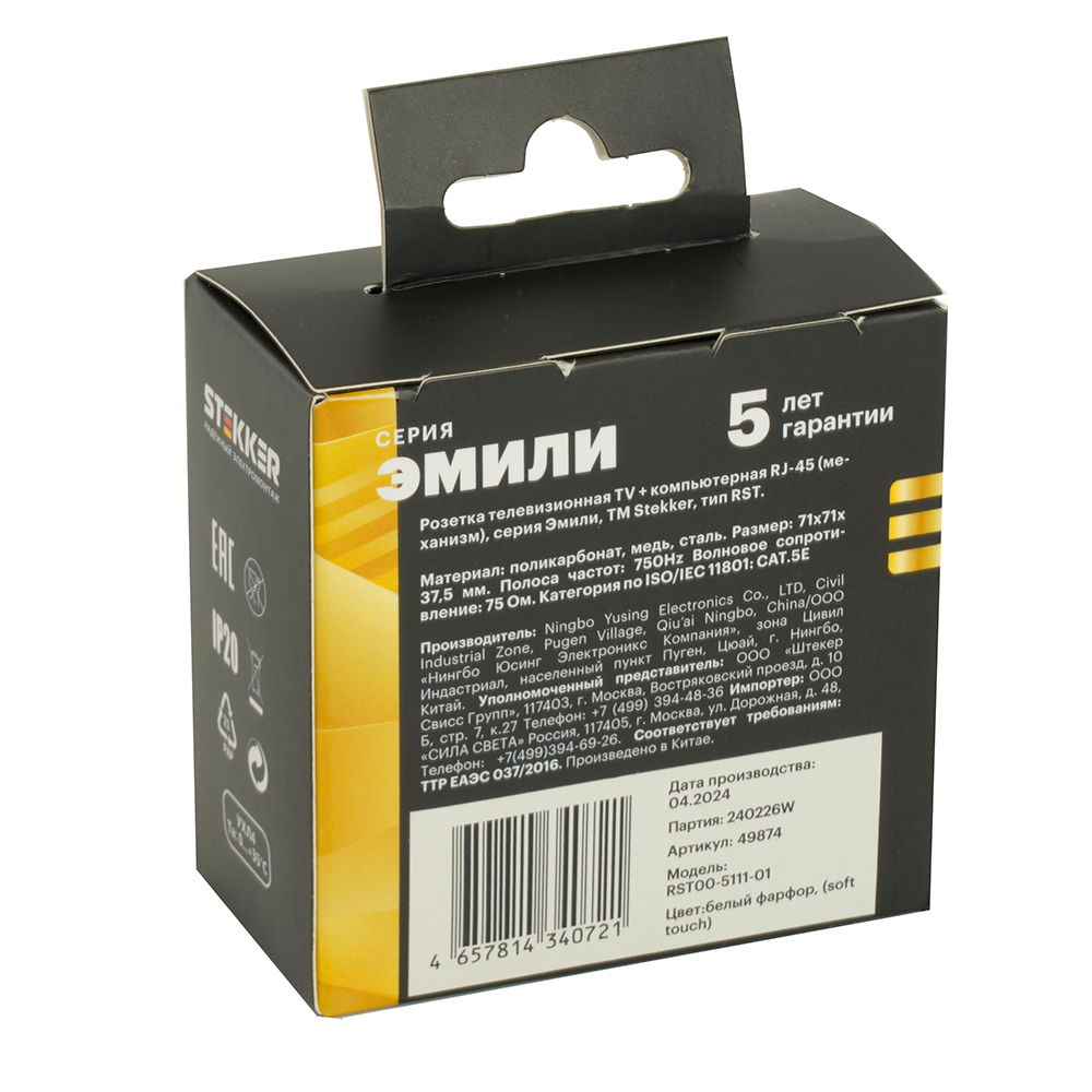 Розетка STEKKER RST00-5111-01 на 2 гнездо, -, -. Материал: поликарбонат, латунь, сталь, цвет белый фарфор, soft touch, размер 71*71*30мм. Номинальное напряжение -, номинальный ток 1A, диапазон рабочих температур 0..+35°C, 20