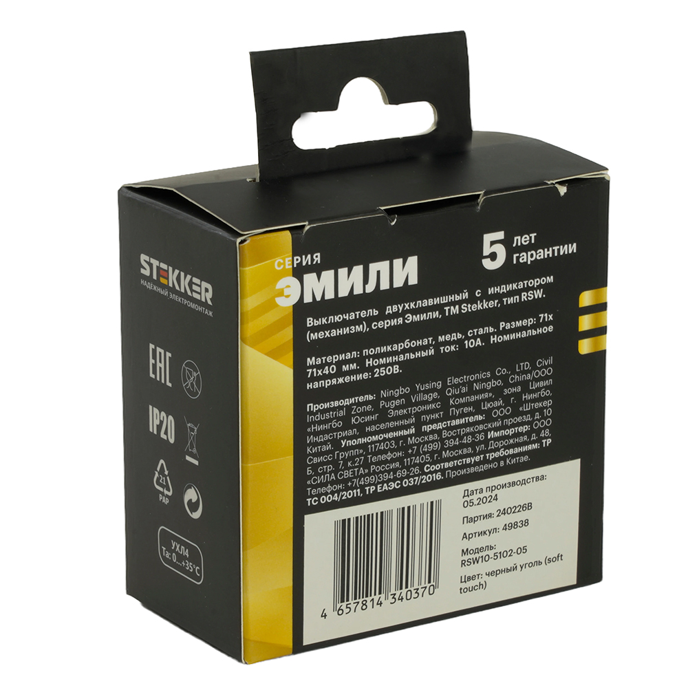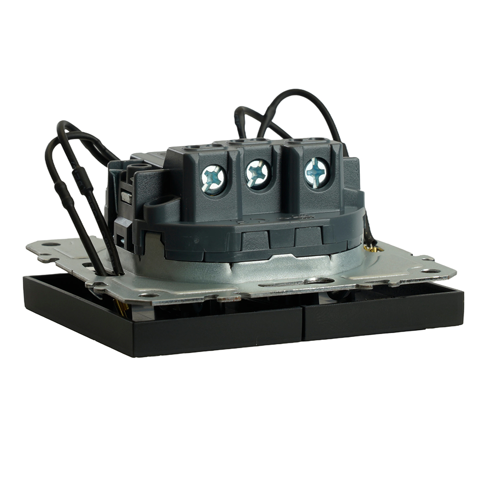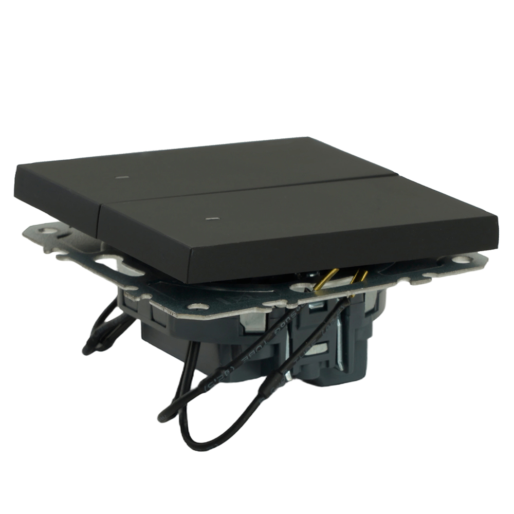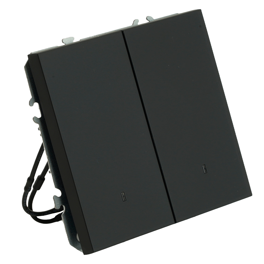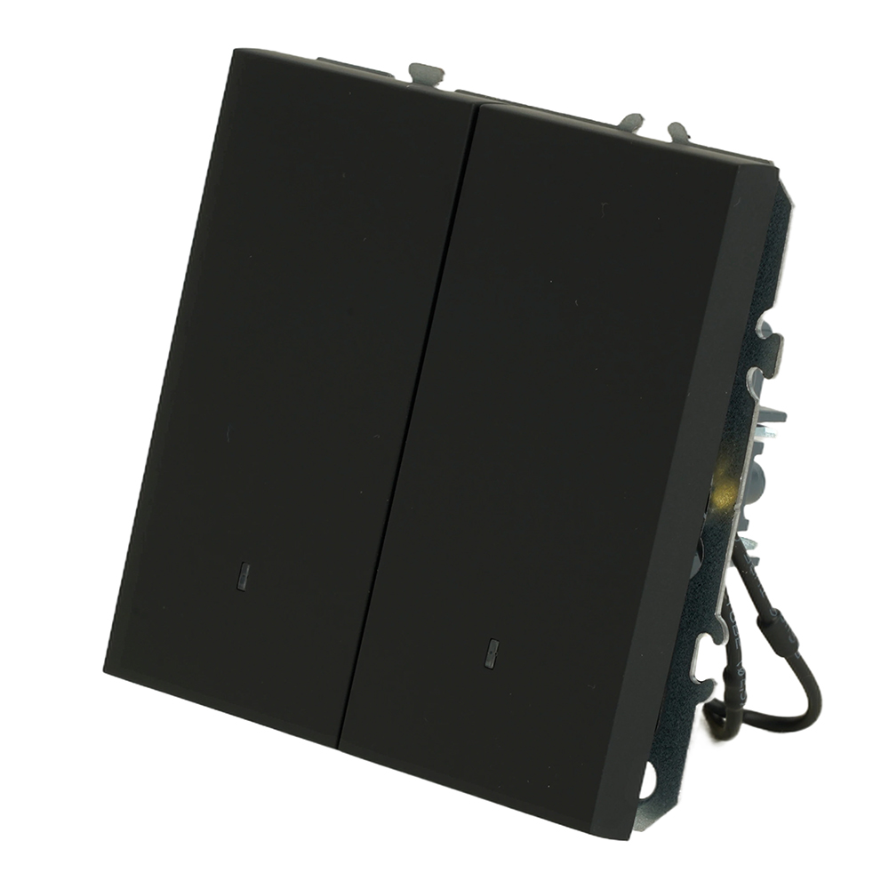 Выключатели двухклавишный STEKKER RSW10-5102-05, серия Эмили, с подсветкой (белый), тип установки - скрытый, размер изделия 71*71*40мм., цвет черный уголь, soft touch, материал изделия поликарбонат, латунь, сталь. Номинальное напряжение 250 , номинальный ток 10А, 20