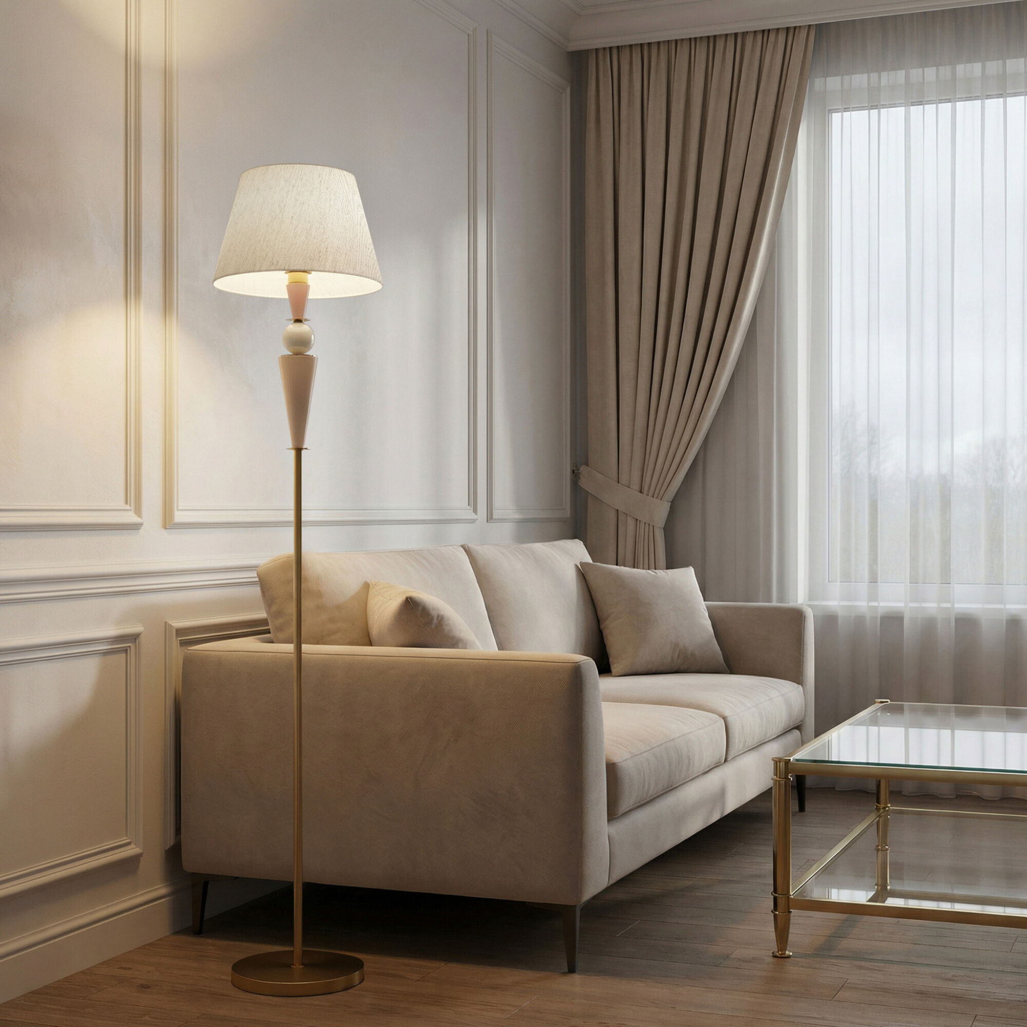 Баланс текстуры и формы: торшер с тканевым абажуром и керамическим декором органично впишется в любой интерьер — от классики до скандинавского стиля.