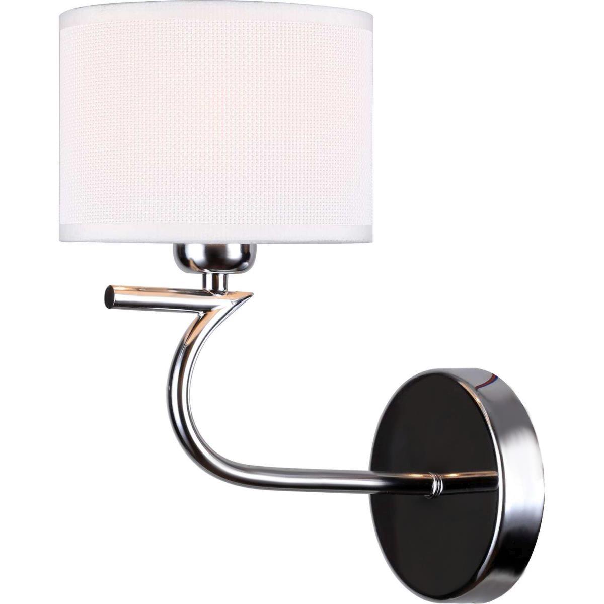 Светильник настенный из коллекции Ellada / Эллада выполнен из металла, гальванизированного в цвет хрома, и декорирован цилиндрическим текстильным абажуром с термостойким акрилом внутри кремового цвета.