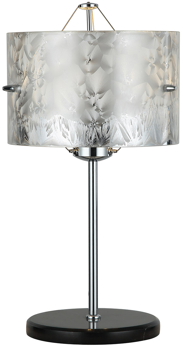 Светильник настольный из коллекции Posher / Пошер выполнен из металла, гальванизированного в цвет хрома, и декорирован стеклянным плафоном, окрашенным в серебряный цвет. Индивидуальный рисунок ручной работы на каждом плафоне, имитирующий узоры инея, придаёт коллекции эксклюзивность. Премиальное качество и неповторимыи? дизаи?н светильников идеально подои?дут в современные и дизайнерские интерьеры.