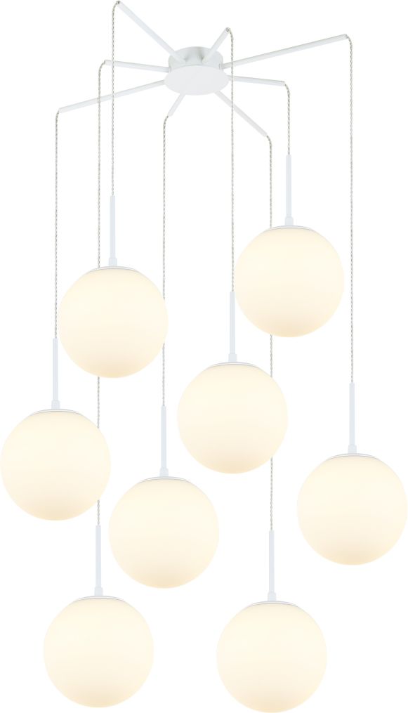 Люстра подвесная коллекции Antell / Антелл выполнена из металла, окрашенного в белый цвет, и белых матовых стекляннхй плафонов, которыу крепятся на винтовую резьбу. Преимуществом подвеса стало использование патронов с цоколем Е27. Благодаря матовым плафонам подвес создает приятное мягкое освещение. Светильник данной коллекции имеет возможность регулировки высоты для помещений как с низким, так и с высоким потолком. *Рекомендуется установка белой матовой лампочки. ? Диаметр ?45мм. Из данной коллекции светильников можно сделать индивидуальный заказ любого цвета и размера.